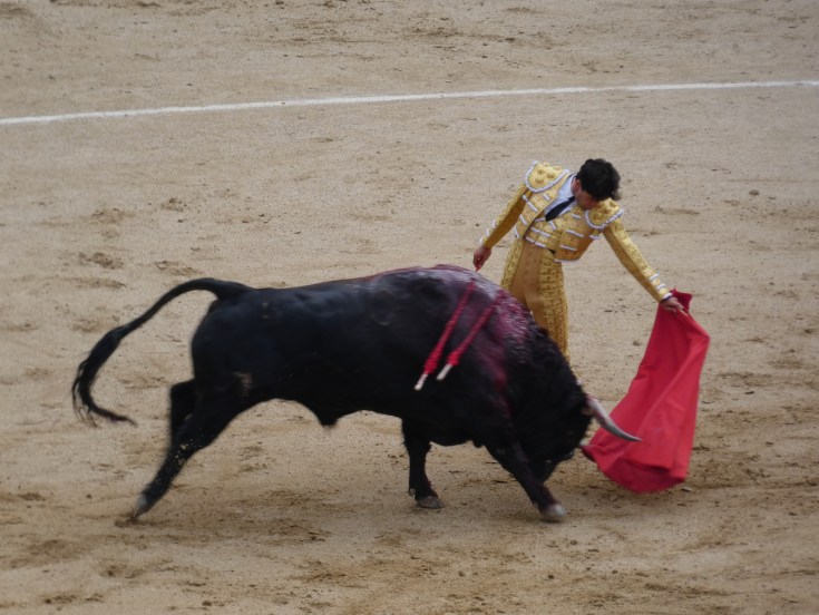 Empezó por estatutarios y, posteriormente, su faena se basó en el pitón derecho, con series encajado totalmente de riñones, estéticas, desmayado y citando siempre de frente. Buscó la colocación en todo momento, cruzándose al pitón contrario como gusta en esta plaza y dando el pecho. A pesar de que fue una faena intermitente, su actitud fue impecable.