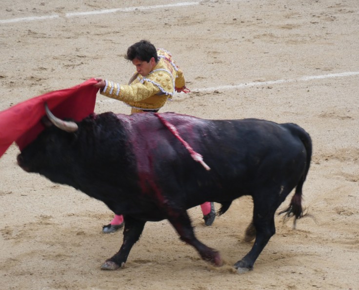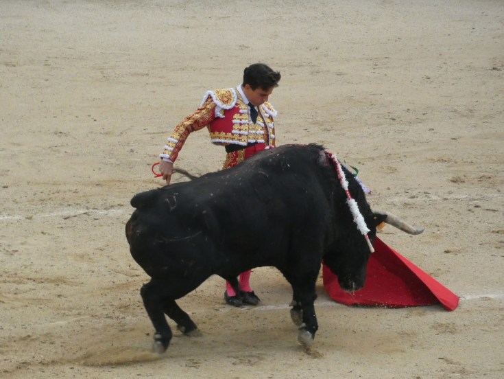 Por el izquierdo se lo pasó muy cerca, pero no acabó de someter al toro, lo que provocó más el «¡ay!» en los tendidos que el «¡bien!» o el «¡olé!». Dejó unos circulares con la izquierda y un final por bernardinas en el que mostró de nuevo su gran valor.