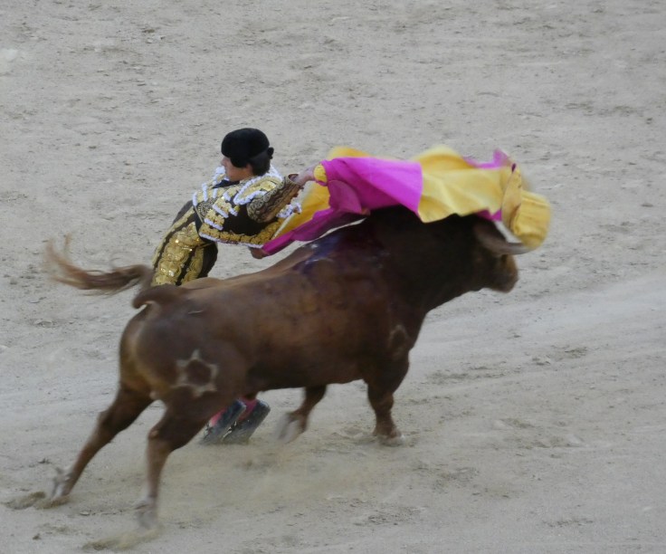 En ese toro se puso realmente pesado y toreando muy al hilo. En esta ocasión sí empezó con sus clásicos cambiados por la espalda, muy ceñidos y con el mentón abajo, mucho más torero que los recortes que hacen el resto. No obstante, esta vez fue desarmado.