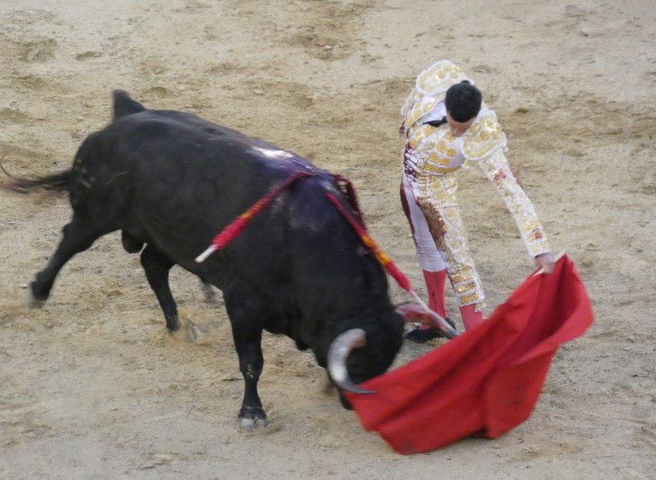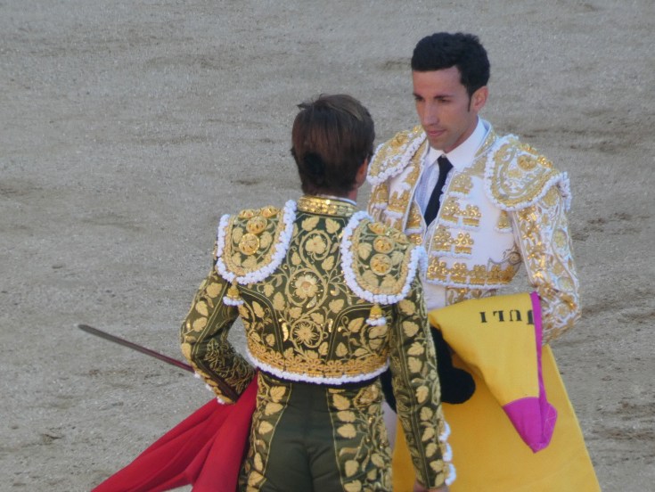 En el primero abrevió y, al segundo, lo exprimió en la muleta con pases al hilo del pitón y hacia fuera. Este toro fue un sobrero de Algarra que salió después que fuese devuelto el titular de Juan Pedro por lesionarse una mano ¡al comienzo de la faena de muleta! Una vergüenza.