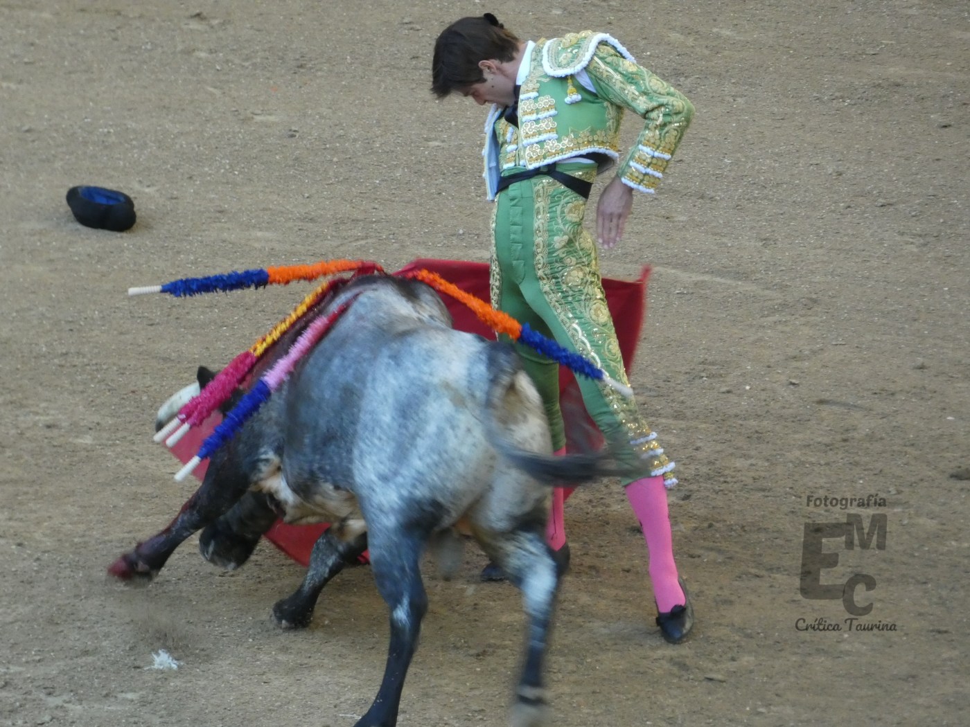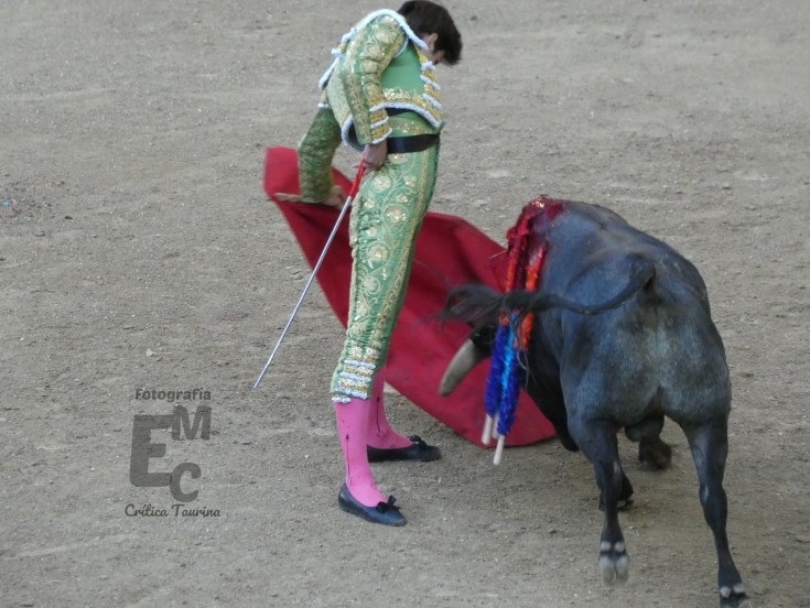 Empezó sacandose hacia fuera al novillo y tras una caída después del comienzo de la faena este empezó a acusar el mismo defecto que sus hermanos de ir con la cara arriba.