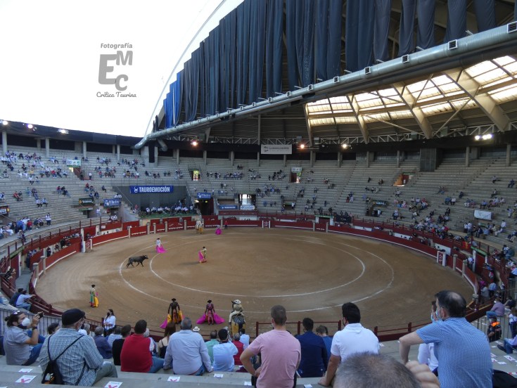 Plaza de toros de La Cubierta (hoy con la cubierta abierta por las medidas de prevención del Covid) de Leganés: entrada muy pobre a pesar de las restricciones de aforo.