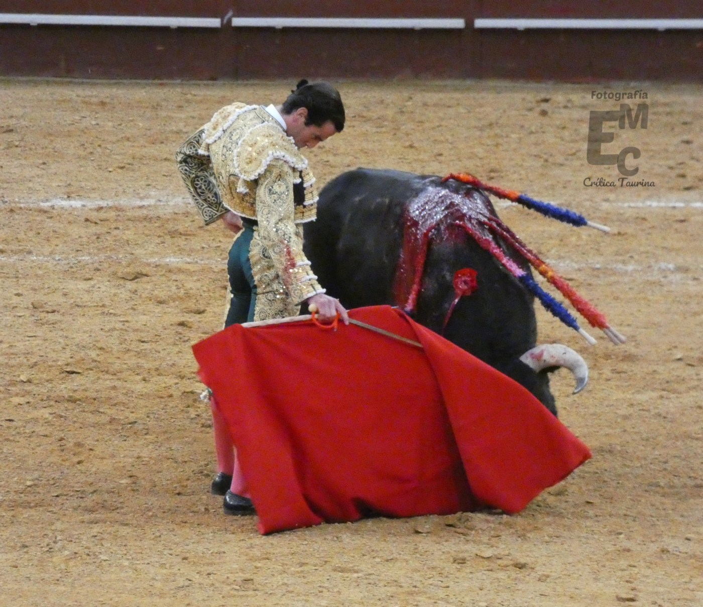 Con torería y gracia sevillana se sacó de la manga un trincherazo y un molinete invertido para salir de la cara del toro camino a por la espada de matar.