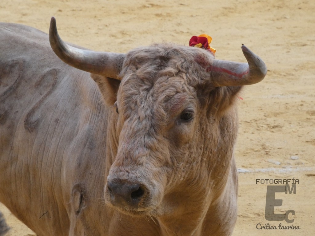 Fue este novillo traído desde Zahariche un animal entipado, muy en lo que es Miura. Alto huesudo y con los pitones apuntando hacia delante. Lo recibió a portagayola Cabrera y tuvo que echarse la arena para que no le arrollase, pero el de la A con asas hizo hilo y le tiró varios derrotes en el suelo, haciéndole una brecha y un pequeño corte en el cuello. José Cabrera se repuso y lo dejó largo al caballo en dos varas. Hoy sí, se trató de cuidar el tercio de varas poniendo a los novillos en suerte desde muy lejos. Puso banderillas el propio novillero sin mucho acierto. Especialmente, le hizo daño al miura una que le puso en el cuello, detalle que no ayudó para nada a posteriori en la faena de muleta. Ahí el novillo pasaba sin ninguna clase y Cabrera lo intentaba sin suerte.