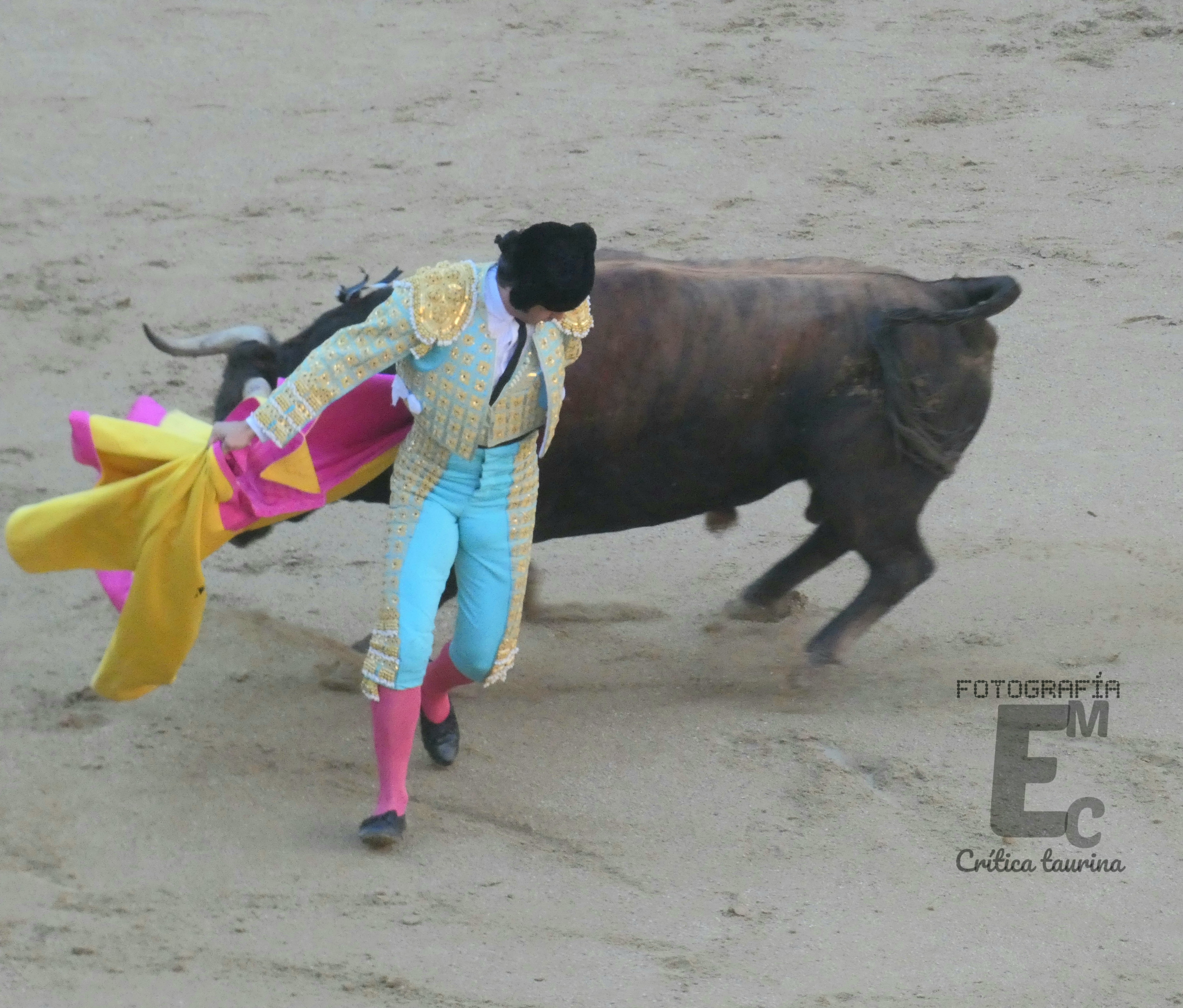El colorado tercero era una pintura. La vuelta de los pitones le daba una gran seriedad. Estaba muy en el tipo de Núñez, pero también tuvo el defecto del encaste de emplazarse. Ginés tardó en ir a por él, pero cuando lo hizo fue para soplarle un buen puñado de verónicas rematadas con una media mirando al tendido.