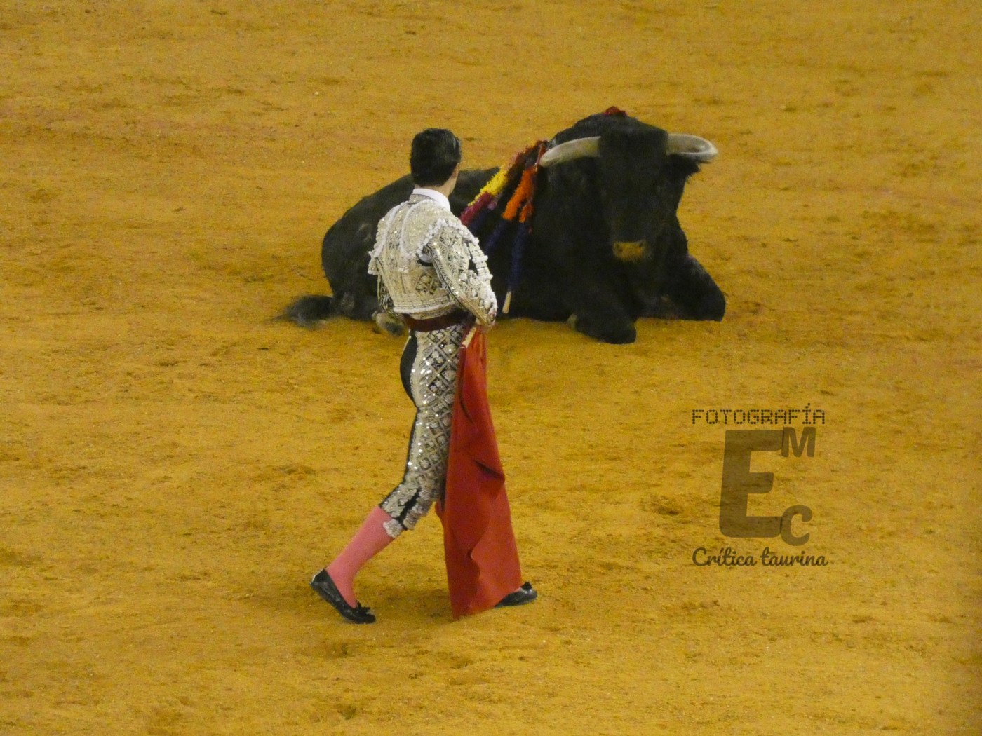 Fueron de nota sus pases de pecho con la izquierda tras cambiarse de mano la muleta para rematar la serie, convirtiéndolos en circulares, algo que empezó a hacer en 2017 y que, aunque nunca los ha dejado de realizar, no se ha prodigado mucho en ellos desde entonces. Ejecutó la suerte suprema muy despacio, pero la espada le cayó baja. Aún así, el público le regaló la segunda oreja.