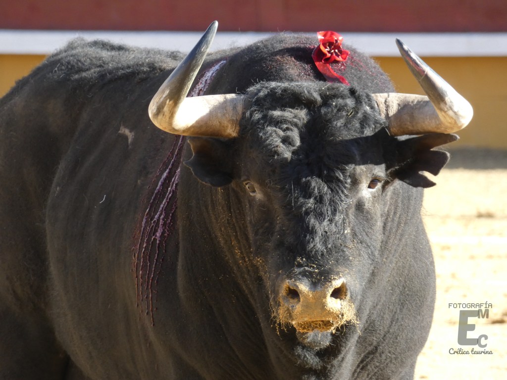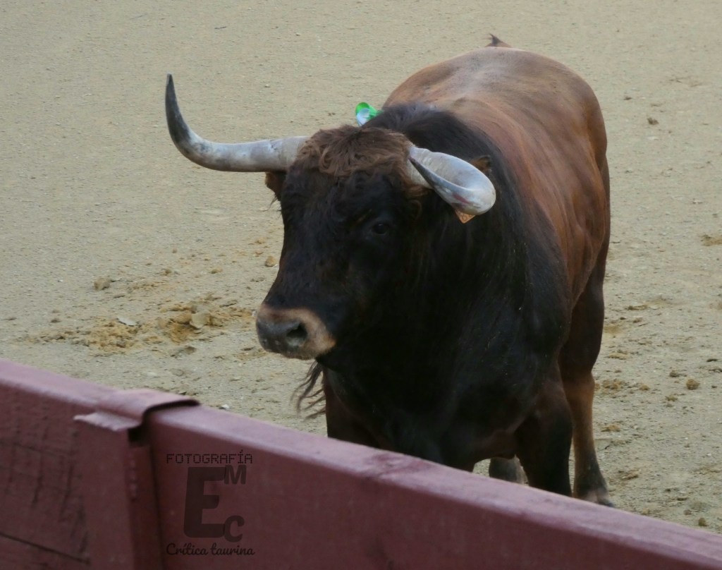 Lo repitió en el quinto y a punto estuvo de costarle un disgusto, ya que al no pasar el de Guerrero y Carpintero, le tiró un feo derrote al pecho. Fue este castaño un animal alto de agujas y bizco, pero muy serio. La lidia fue pésima y la colocación de las banderillas, lo siguiente. Una en el morrillo, sumándole que la divisa estaba caída y que había otra banderilla muy trasera que hacía buena la del morrillo, provocó que el toro se doliese cada vez que tenía que girar entre muletazo y muletazo y sacase genio. Lo entendió Jiménez en línea para acabar sacándole alguna serie.