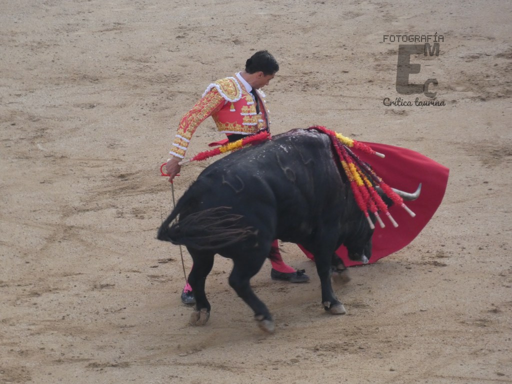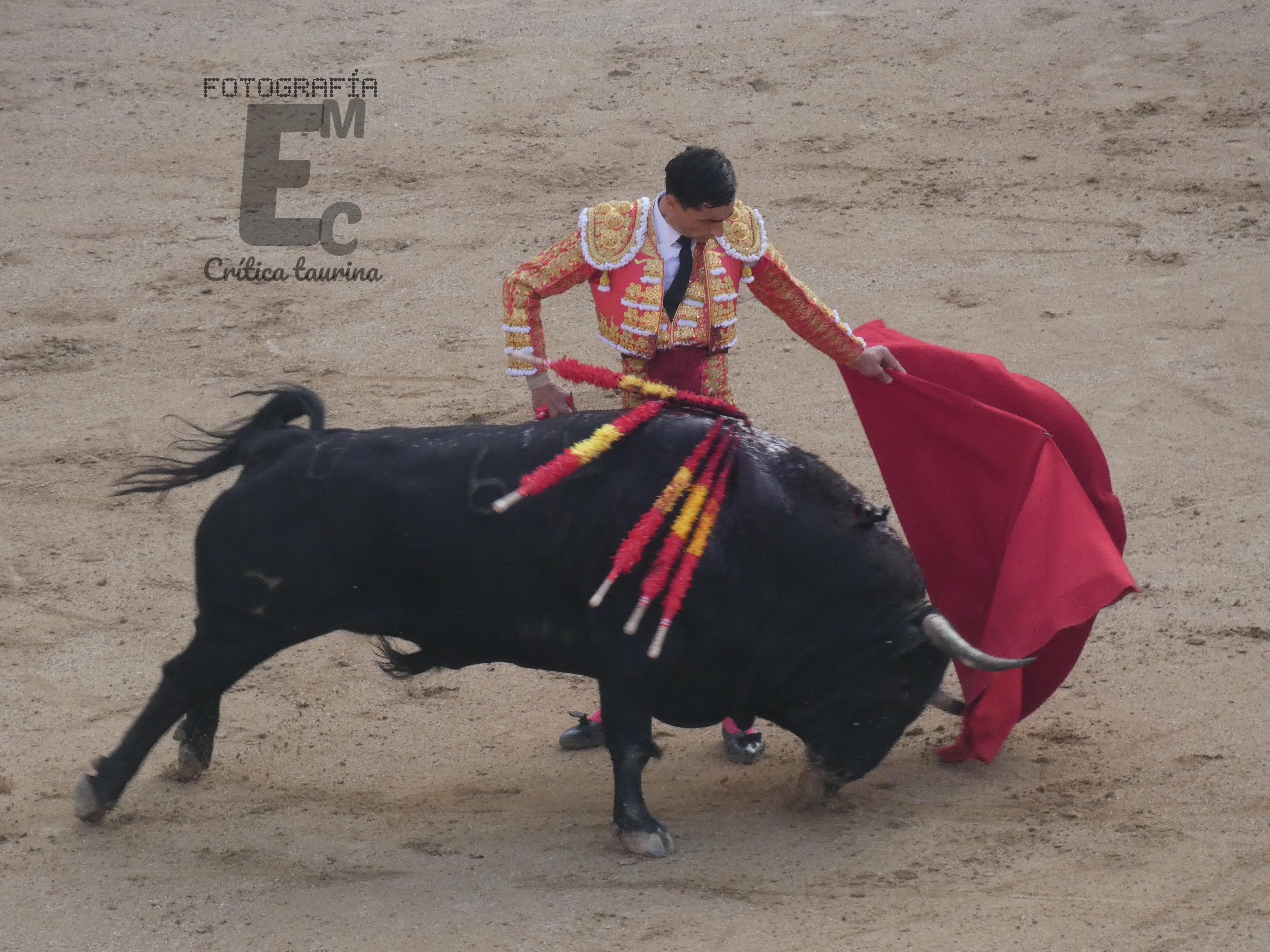 Brindó a «su Madrid» y ahí se quedó en el centro del ruedo para empezar con un par de estatuarios que ligó a tres naturales con el compás muy abierto. De nota. El de pecho mirando al público. Siguió con la izquierda, pero el toro ya se vino a menos en la segunda tanta. Cogió la derecha para dejársela y ligar una serie en la que levantó el vuelo de la faena, pero el animal se desfondó totalmente.