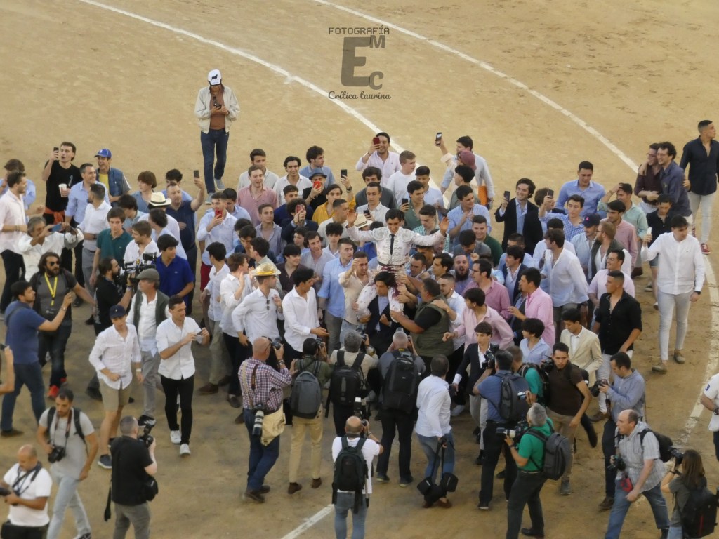 – Ángel Téllez (de blanco y plata, que sustituía a Emilio de Justo): oreja y oreja tras aviso.