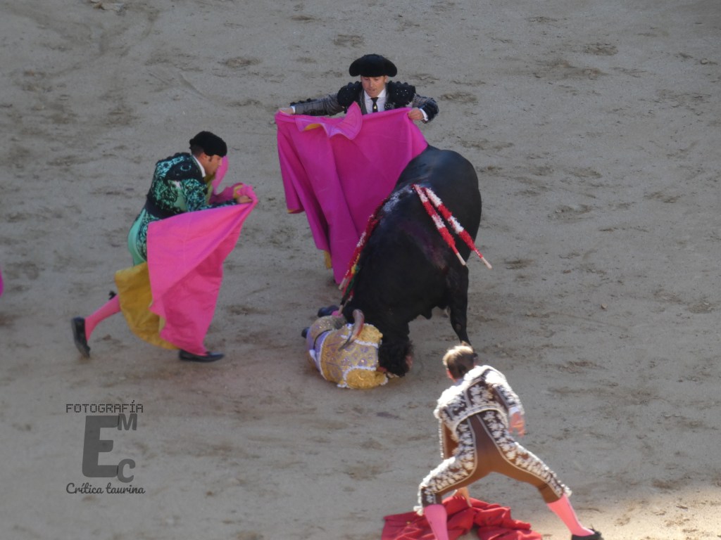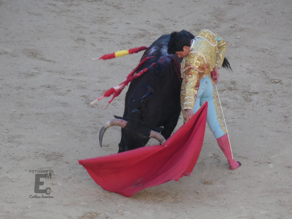 Con el escurrido segundo (parecía de Miura) se mostró capaz, pero también estuvo por debajo del novillo. Destacó el inicio «a lo Talavante» genuflexo, con un pase mirando al tendido, como también destacó el quite del mexicano Isaac Fonseca por ceñidísimas chicuelinas.