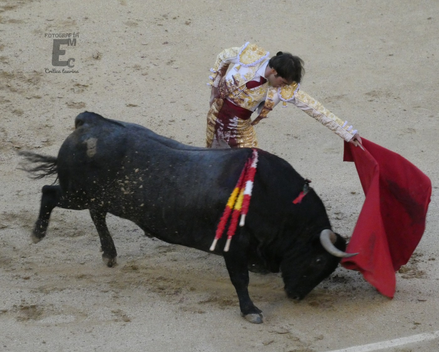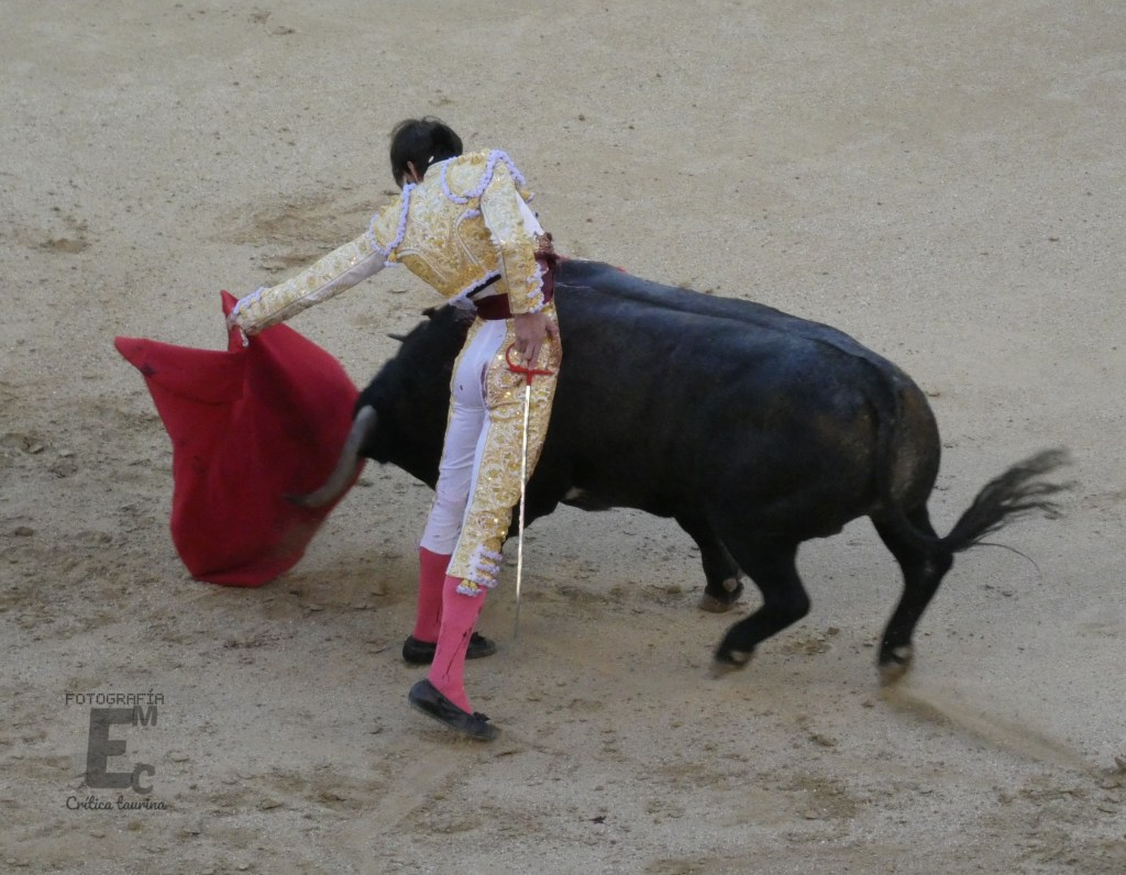 Mejor toreó al noble cuarto, aunque tardó en cogerle el pulso. De nuevo empezó citando al toro casi desde los medios, en esta ocasión con la izquierda. Su toreo tuvo verdad, pero no se terminó de acoplar a la despaciosa embestida del adolfo hasta las dos últimas series antes de irse a por la espada de matar. Ahí si logró muletazos muy templados, tirando del animal con muchísima suavidad y sin inmutarse cuando este se le paraba. Se fue a por la espada de matar para acto seguido arrojarla a la arena (¡vaya tontería!) junto con la de ayuda que ya estaba allí. Al tratar de torear al natural con la derecha el toro le pisó la muleta y lo desarmó en mal momento, ya que había una buena comunión con los tendidos. Volvió a dar estos naturales con la derecha enfrontilado antes de su sainete con los aceros. ¿Cuántas veces descabelló? Escuchó dos avisos y la bronca del público, que pasó de aplaudirle a pitarle viendo que no era capaz de matar al toro.
