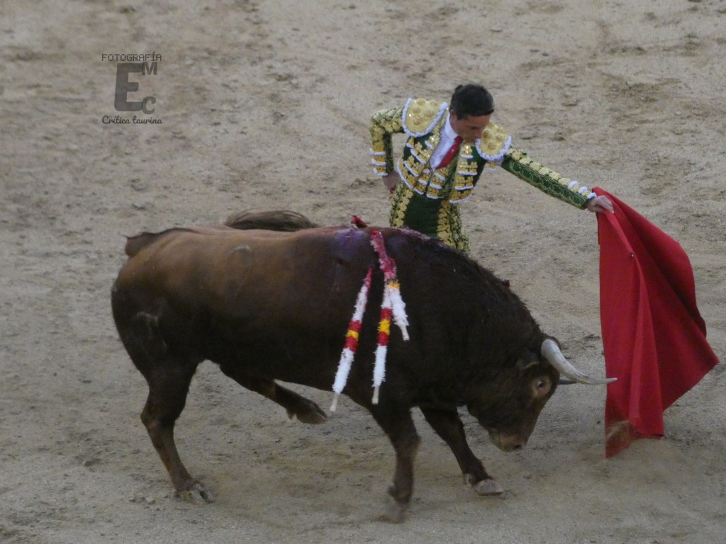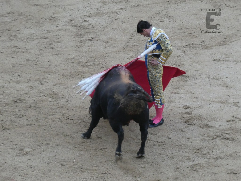 Empezó por bajo y cuando se puso vertical dejó un muletazo repleto de naturalidad. En el toreo en redondo no perdió esa naturalidad tan característica suya, mas también es muy típico en su tauromaquia el uso del pico y eso en Madrid es recriminado instantáneamente. Así sucedió y Pablo optó por un toreo cruzándose más para contentar al respetable, aunque menos ligado. De uno en uno y perdiendo pasos dejó grandes muletazos, pero sin acabar de conectar con el tendido por la falta de transmisión de su oponente.
