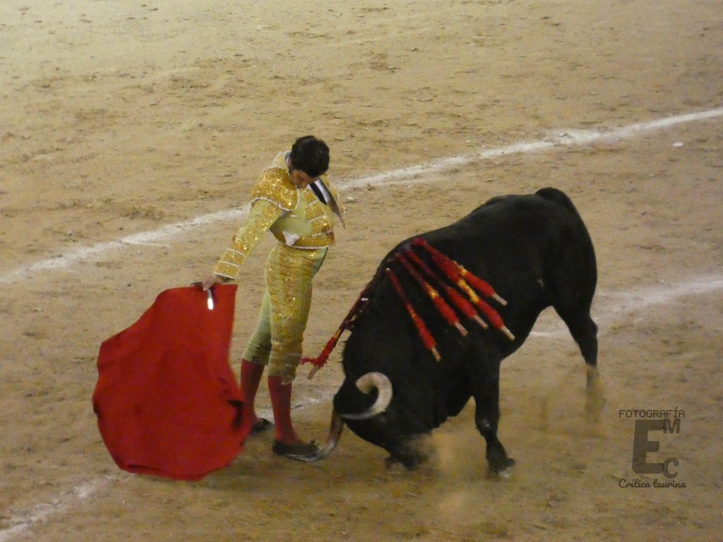 Ángel Téllez sorteó el mejor animal del encierro, si bien no fue nada fácil. Fue un toro muy encastado de El Puerto de San Lorenzo al que Ángel toreó bien a la verónica, pero al que nunca sometió con la muleta. Se puso en los medios para empezar a torear al natural, mas el toro no se arrancó y Téllez tuvo que cambiar de inicio, pero no le pudo, y eso, lo acusó en toda la faena. Se veía al torero frágil ante un toro con mucho que torear. Exigía un toreo mandón y no un toreo bonito. Aunque Ángel Téllez le dio una buena serie con la derecha, muy encajado, y rematada con un gran pase de pecho a la hombrera contraria con la mano izquierda tras el cambio de mano, la sensación que quedó es que Téllez quiso más que pudo. Las manoletinas finales no dejaron de ser más que un claro resumen de la faena: con emoción, porque el toro se revolvía presto, pero sin mando. Se pasó de faena, escuchando dos avisos.