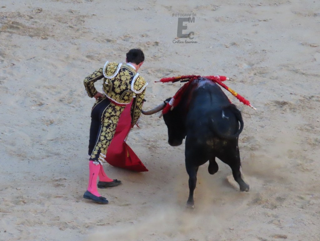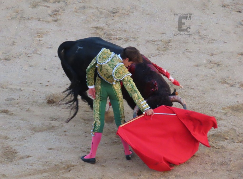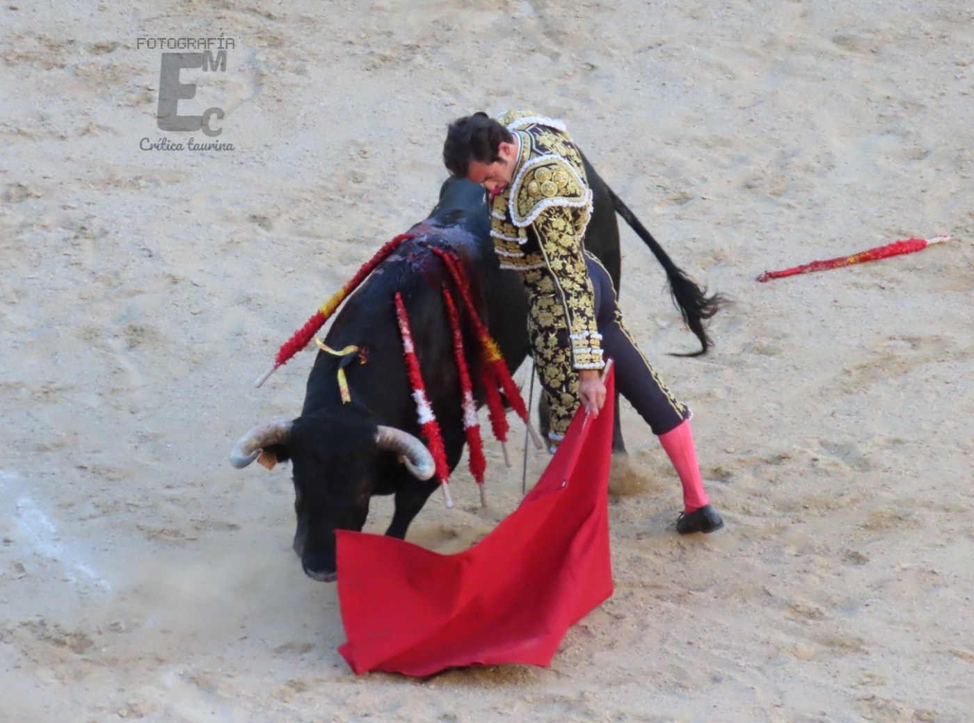 Con el de «toro» (que es lo que parecía) de Carriquiri empezó la faena «a lo Talavante», es decir, en redondo genuflexo y el último pase mirando al tendido. Pero Talavante nos dejó boquiabiertos en su día y el resto no son más que meras imitaciones. También recordó a Alejandro en un pase de pecho también mirando al tendido. Parece que es su espejo. De nuevo, faena derechista (ni una serie completa con la izquierda), pero encajada. Como decía, las formas son muy buenas, pero el compromiso de Las Ventas le venía grande. No puede venir un novillero que aún no sabe matar. A su primero lo mató porque se tiró encima, ya que no hizo la cruz, y a este de Carriquiri lo pinchó en numerosas ocasiones con el agravante de que en todos los intentos tanto la espada como la muleta salían despedidas. Escuchó dos avisos.