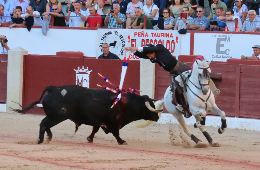 Plaza de toros de Colmenar Viejo (media plaza): toros de Guiomar Cortés de Moura para rejones (nobilísimo el primero y exigente el cuarto, aplaudido en el arrastre), con muchos kilos, y de Conde de Mayalde para la lidia a pie (enclasados cuarto y quinto, aplaudidos ambos en el arrastre).