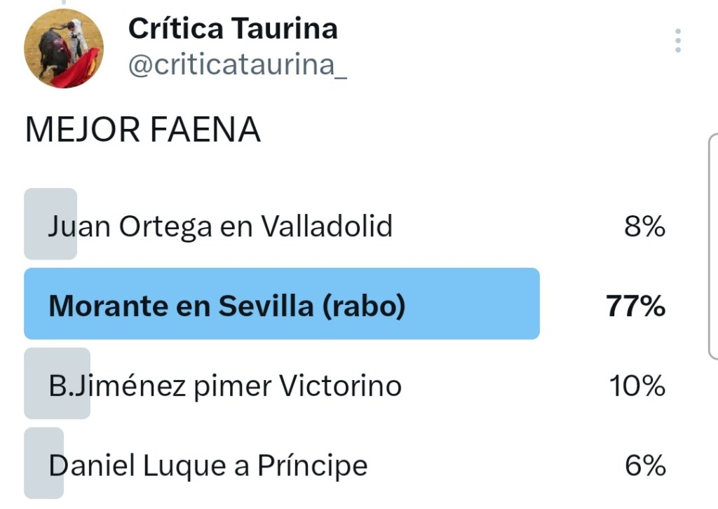 | Voto de la afición en Instagram | Seguidores de Instagram | Morante a “Ligerito” en Sevilla (rabo) |