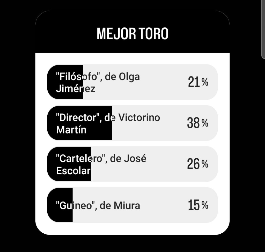 | Voto de la afición en Instagram | Seguidores de Instagram | “Director”, de Victorino Martín (Madrid) |