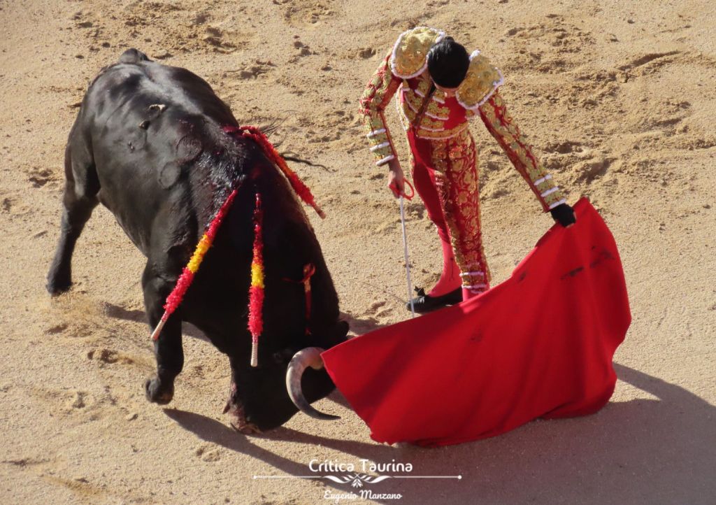 Rufo lo hizo a medias. Tras un inicio de rodillas marca de la casa (como el de hace una semana), en el que el atanasio apretó, este se rajó. La faena giró por todo el anillo pegada a tablas, completando los 360° para acabar en toriles. Estaba claro. Tomás pudo ligar varios muletazos en la parte inicial de la faena dejando la muleta puesta con la derecha. Era un toro para hacer la noria con él y que no viese otra cosa que no fuese la franela. Sin embargo, Tomás Rufo tomó la izquierda y dejó algún natural suelto, pero al vaciar la embestida el del Puerto huía despavorido, incluso soltando coces. Faena de largometraje de un torero al que se ve demasiado obsesionado con arrancar orejas como sea.