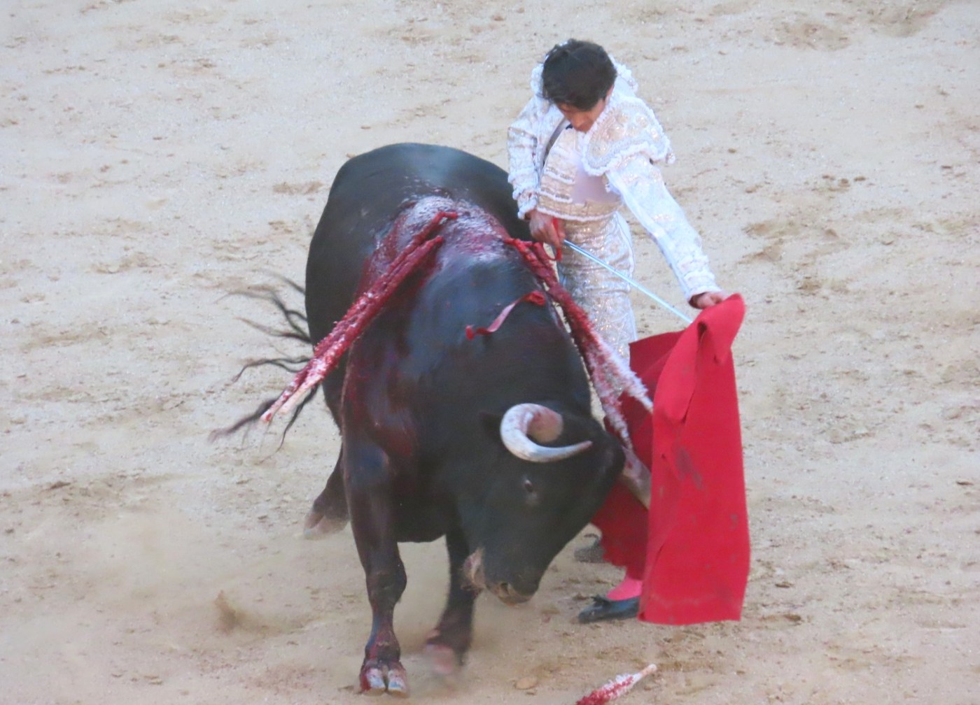 – Sebastián Castella (de blanco y plata): palmas tras aviso y pitos tras aviso.