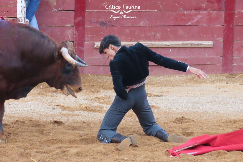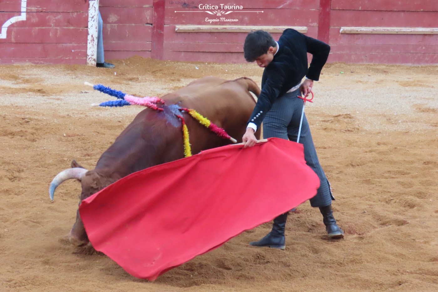 Después de la merienda se las vio con un burraco con menos caja que el resto del encierro, pero más complejo. Le dio una voltereta y estaba constantemente con él, con muchas miradas. Hizo una faena firme (también muy lineal) y terminó con un breve macheteo antes de matar con un bajonazo y tras varios errores con el descabello. Además, el puntillero falló en reiteradas ocasiones ganándose una buena bronca.