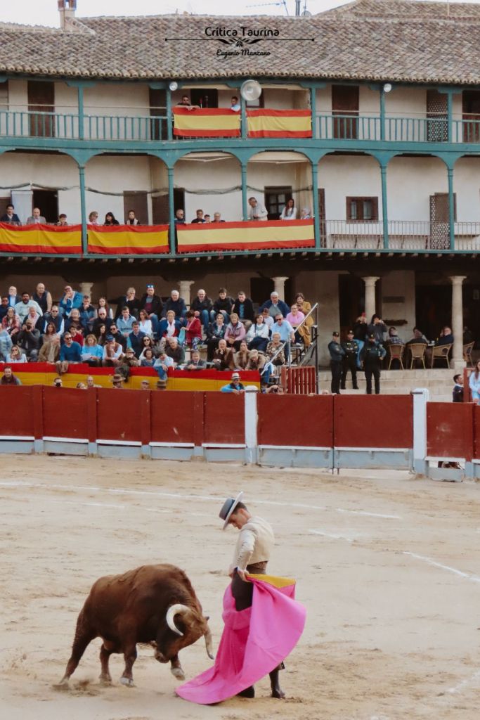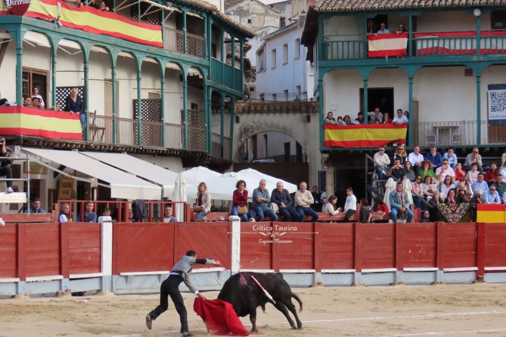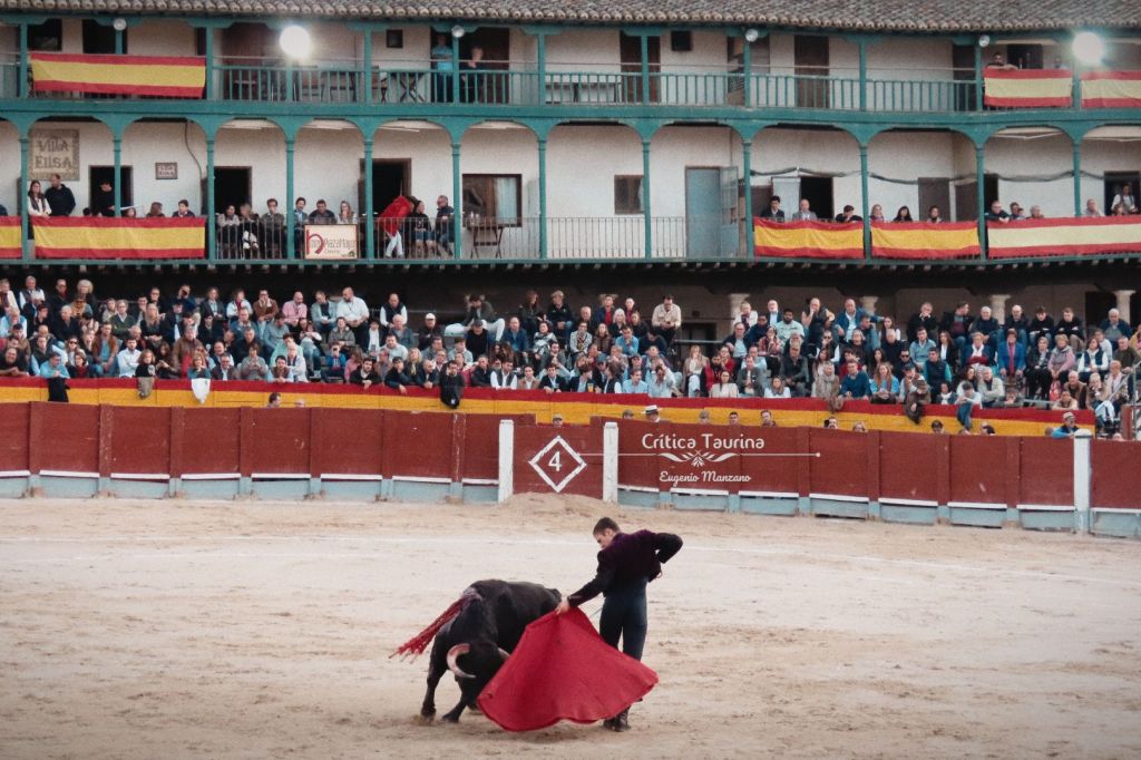 Juan Mora impregnó de torería la bella plaza mayor del municipio madrileño. Desde que cogió el capote mostró su exquisito gusto. Hubo algunas verónicas de seda, ralentizadas. Es un lujo poder disfrutar aún de Juan Mora, aunque sea en un festival (en el que lidió el novillo más cómodo, todo hay que decirlo). Con la muleta empezó por bajo para, rápidamente, ponerse a torear con despaciosidad (valga la contradicción) al natural. Hubo algunos muy templados y encajados. Otros fueron más irregulares, pero la obra tuvo mucho sabor. Todo con la izquierda. Como es costumbre en su tauromaquia, salió con la espada de matar a hacer la faena, por lo que no tuvo que ir a las tablas a por el estoque. Cuando estaba la faena en lo alto, se tiró derecho a matar, mas pinchó (lo que no impidió la concesión de una oreja). Nos quedamos con ganas de más.