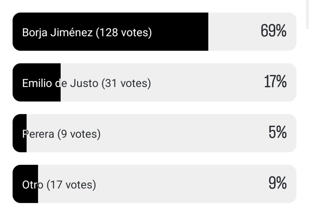| Voto de la afición en Twitter | Seguidores de Twitter | Borja Jiménez |
