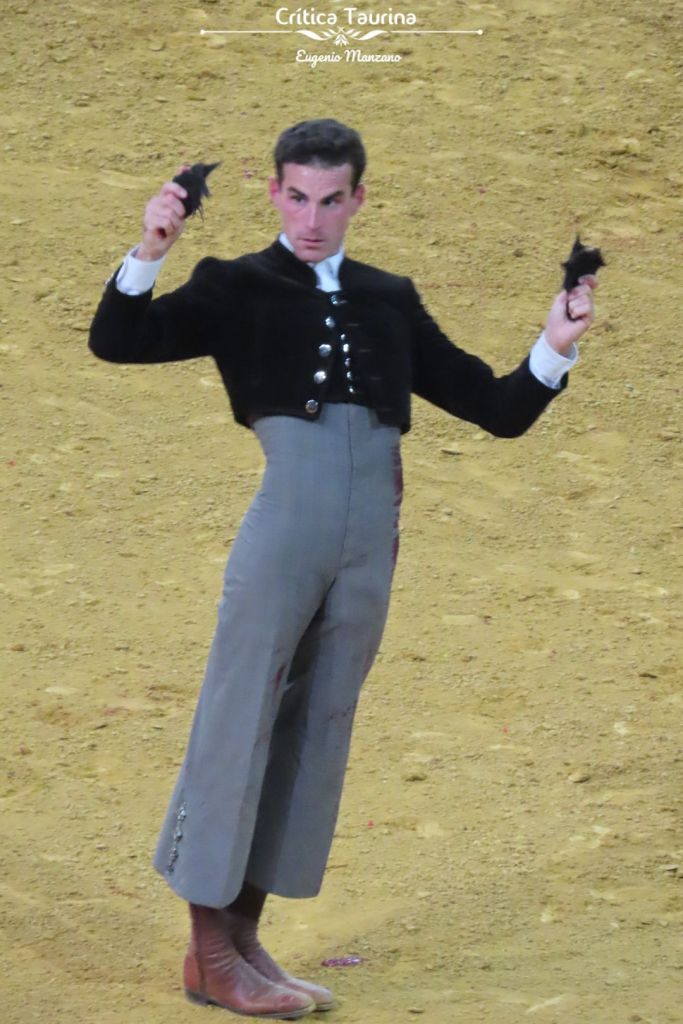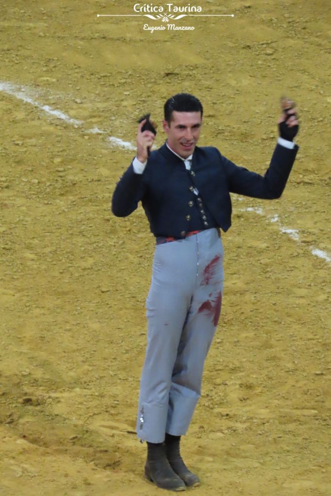 Este torero es una máquina de sacar pases. Pega muchos. Unos mejores y otros peores, lo que normalmente para el público general es una gran virtud y para el aficionado más puro, un defecto, pues a veces no importa cómo los dé; solo que los dé. De hecho, hubo algunos muy fuera de cacho y pasándose al novillo bien lejos, además de hacerlos con una estética dudosa. En lado opuesto, hubo otros en los que tragó para dejar la muleta siempre en la cara y poder ligar, dotando a la faena de gran intensidad. Intensidad que perduró hasta el final, ya que cuando el novillo buscó las tablas, el de Torres de la Alameda se lo llevó a esos terrenos con un natural de rodillas, un doblón por abajo para poderlo y que no se rajase más y una gran trincherilla de sometimiento. Estuvo valiente e inteligente.