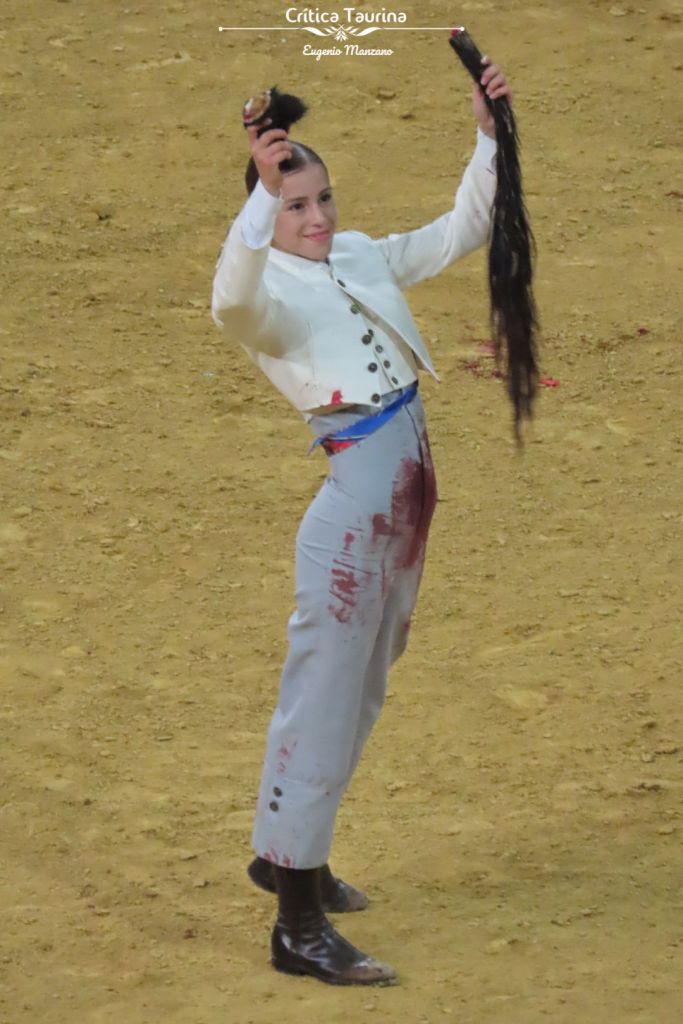 Ahora sí fue a por la espada de verdad no sin antes realizar una serie de manoletinas. Faena de largometraje. Estocada hasta la bola y dos orejas y rabo. Otro nombre, el de Olga Casado, a tener en cuenta el próximo año ya en el escalafón de novilleros con caballos.