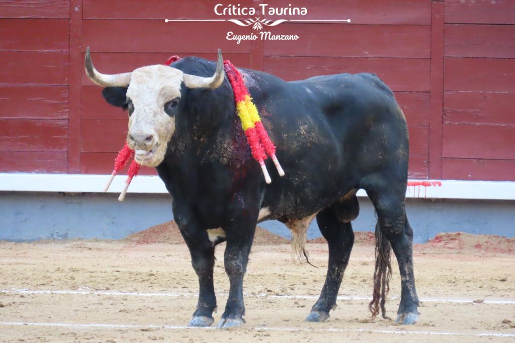 Después, el novillo se rajó y buscó las tablas. Como Cristiano Torres se había pasado de faena, poniéndose pesado con el arrimón, el novillo se puso complicado a la hora de cuadrarlo para entrar a matar, dando una vuelta al ruedo completa al ser andarín. Finalmente, de forma hábil metió el brazo el aragonés junto a los toriles, pero citando en la contraquerencia.