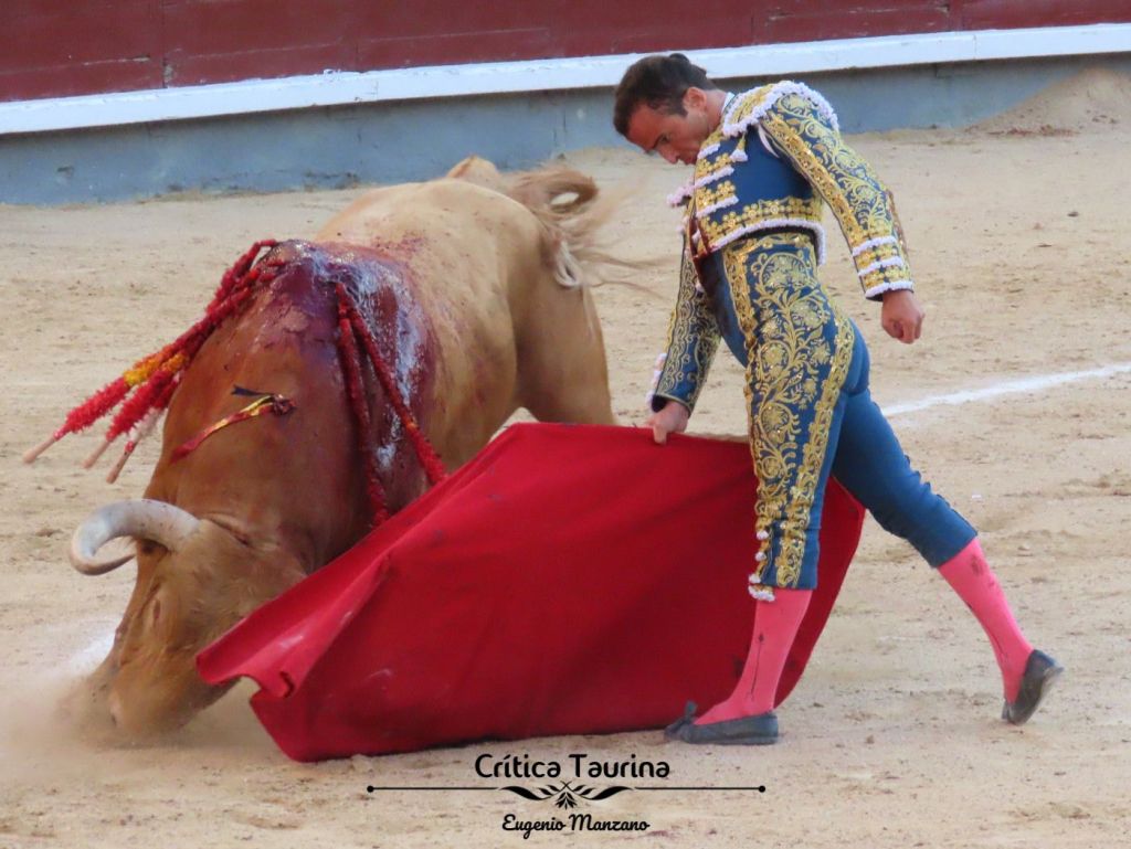 Juan de Castilla levantó la tarde en el tercero. O mejor dicho, el público conectó tras una feísima voltereta que le propinó el toro al cruzársele de lejos, yéndose directamente al cuerpo del torero y levantándolo de nuevo del albero. Luego supimos que tenía cornada. Eso fue lo que hizo al respetable entrar en la faena, que fue más de querer que de poder, porque el toro no andaba sobrado de bravura. Tenía más bien genio. Juan de Castilla estuvo algo despegado, pero robando pases con mérito. Entró con todo a matar, perdiendo la muleta, pero dejando la espada arriba. Buena estocada, pero el toro fue muy duro para morir, sacando su casta y levantándose en varias ocasiones.