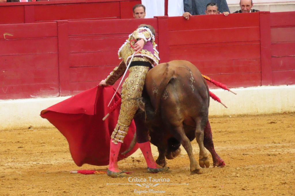 Sin embargo, Borja Jiménez ve toro por todos los sitios y lo supo retener dejándosela siempre muy puesta en la cara, aunque abusando del pico y pasándoselo lejos. Gustaron en el festivo público los circulares finales y el cambiado por la espalda y cortó una oreja.