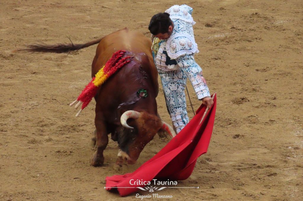 La faena estuvo presidida por el buen gusto, logrando ralentizar la veloz embestida del burel desde la primera serie, con un derechazo que se convirtió en un muletazo circular.