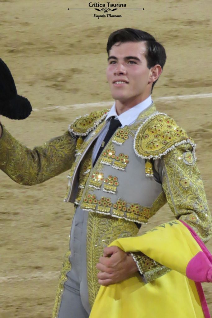Cid de María recibió a portagayola al segundo, que salió con mucho brío. Cid de María estuvo bien corriendo la mano en largos muletazos, aunque el novillo pasaba por allí sin demasiada entrega. Faltó enroscarse más al animal. Se dio una vuelta al ruedo por su cuenta; protestada.