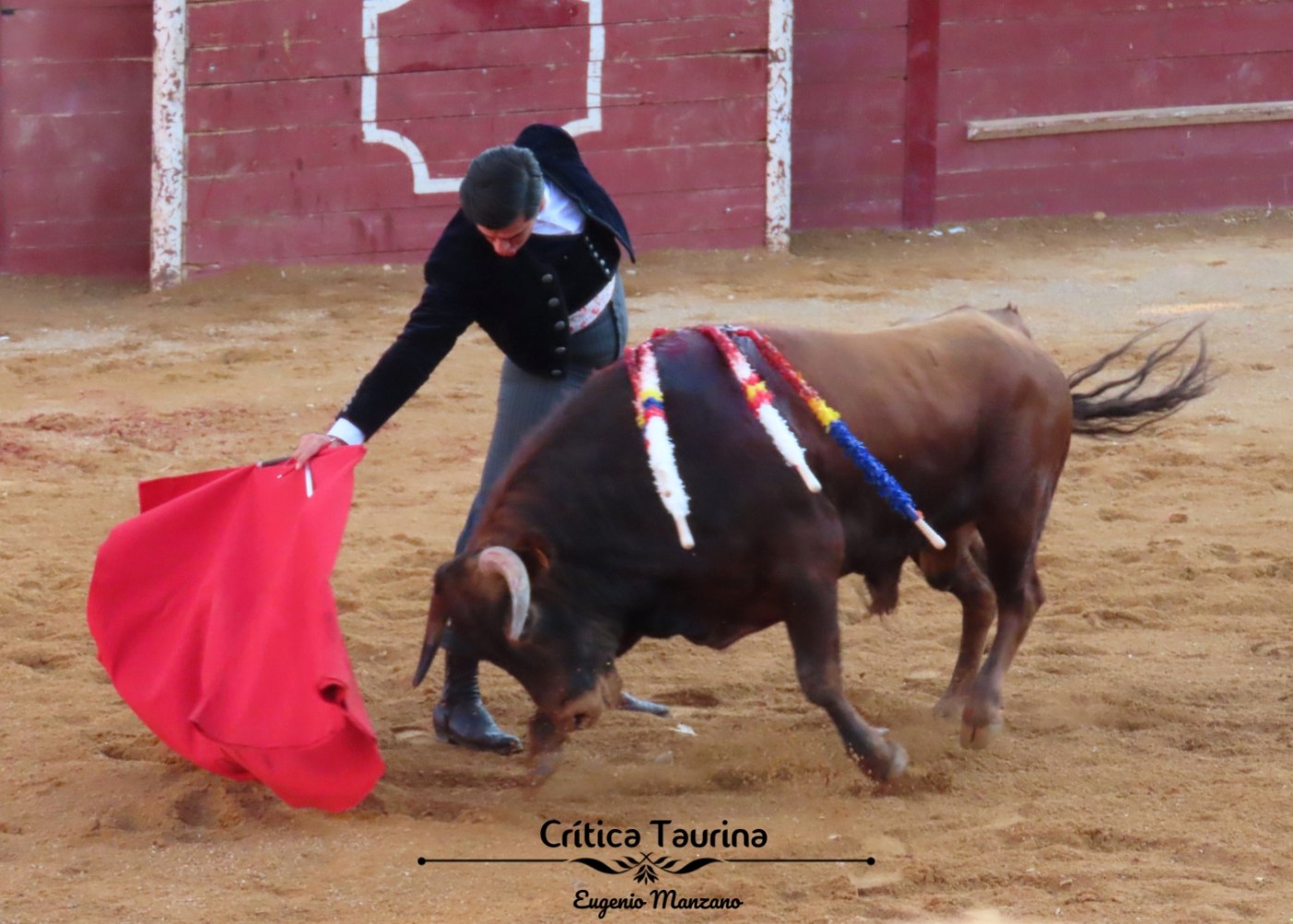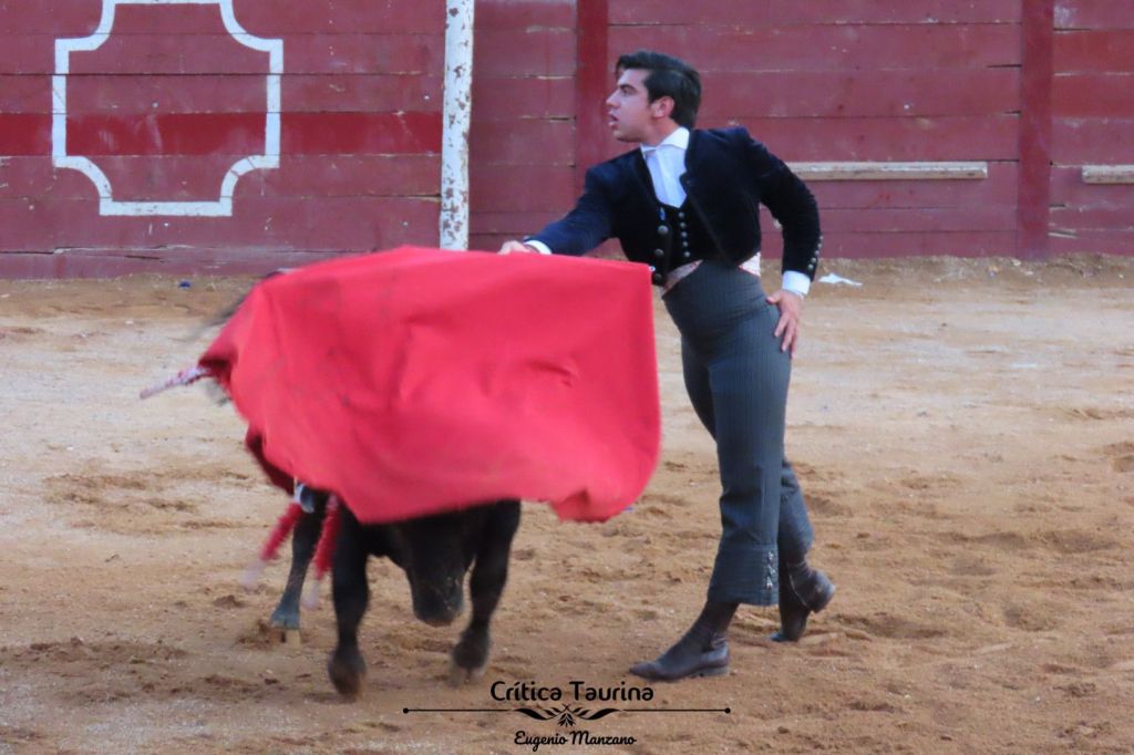 Con la muleta toreó con temple y suavidad por ambos pitones, pulseando las embestidas del de Miranda de Pericalvo sin dejarse tocar las telas. Cuando parecía que el novillo se podía rajar le cambió los terrenos con acierto. Terminó en los terrenos de cercanías toreando en ochos. Los pinchazos le privaron de tocar pelo.