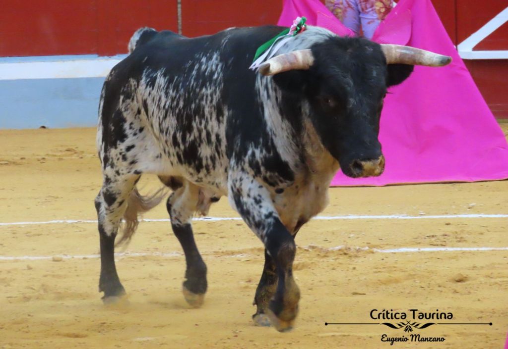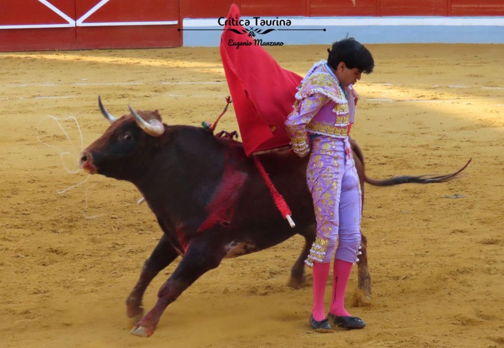 El que abrió plaza fue un novillo escurridísimo, sin nada de remate en los cuartos traseros. Una raspa con pitones. Fue un novillo que transmitió poco y con el que Sergio Sánchez tampoco dijo mucho. El inicio por bajo no ayudó al animal. Hubo un buen natural antes de llegar a lo más emocionante de su trasteo, que fue el ajustado final por bernadinas.