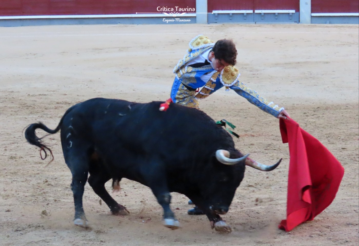 Víctor Hernández lo bordó al natural, toreando con muchísima pureza y rematando detrás de la cadera, ofreciendo la femoral. En efecto, muy tomasista. Probablemente, nunca llegue a acercarse a lo que ha sido José Tomás (sería lo normal), pero es indudable que se parece mucho. Bebe de sus fuentes. Recordó a él desde ese vestido azul pavo y oro, al inicio por estatuarios y el pase del desdén, pero también en el toreo fundamental al natural. Otras temporadas aún no lo habíamos visto, pero este año está toreando más puro que nunca y con mayor verdad, más en la línea del de Galapagar. Si sigue así puede ser un torero muy importante, aunque ahí los toros inevitablemente le van a coger bastante. Como debe hay que decir que José Tomás cuajaba a los toros de principio a fin al natural, mientras que Víctor perdió dos o tres series de probaturas con la diestra. Para haber cortado las dos orejas tenía que haberse puesto antes (desde el comienzo) con la izquierda, con la que torea mucho mejor y fue el pitón por el cual el toro no perdía las manos. El de Fuente Ymbro estuvo cogido con alfileres. Sin embargo, no fue problema para que Víctor Hernández le armase un lío al natural que puso al público en pie de forma unánime. ¡Qué manera de torear! Cortó una oreja tan de verdad que debería servirle para estar anunciado en tres tardes con carteles de categoría en el próximo San Isidro. Y también para que le abran las puertas de las demás grandes ferias de cara a la siguiente temporada.