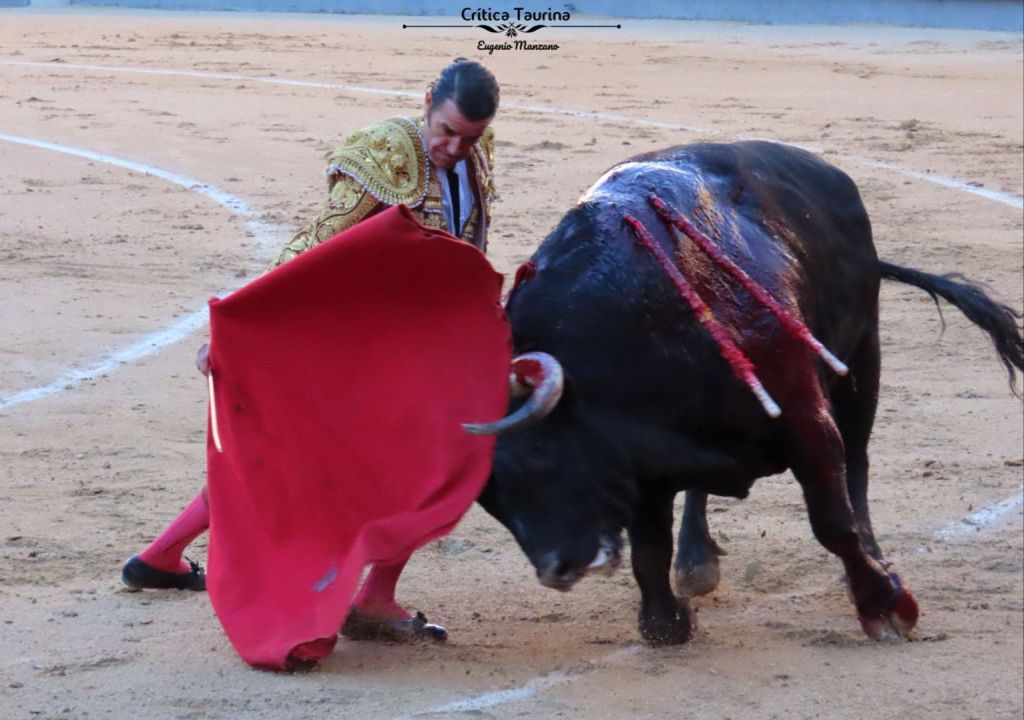 Fortes inicio su faena por bajo, sorprendiendo al respetable cuando se puso rodilla en tierra a torear en redondo. Muy inspirado. Hubo una serie de derechazos en la que tiró más del pico de la cuenta, pero tras un pequeño susto, la faena mantuvo esa emoción que da el pasarse el animal tan cerca, sabiendo que podría haber otros sustos. Expuso mucho y aguantó todos los parones, pero no mató bien.