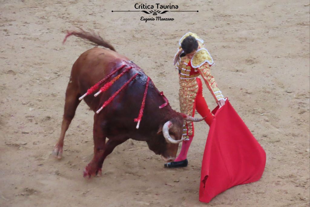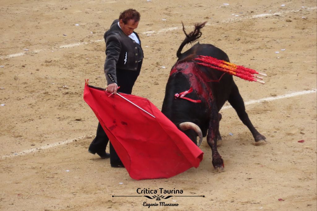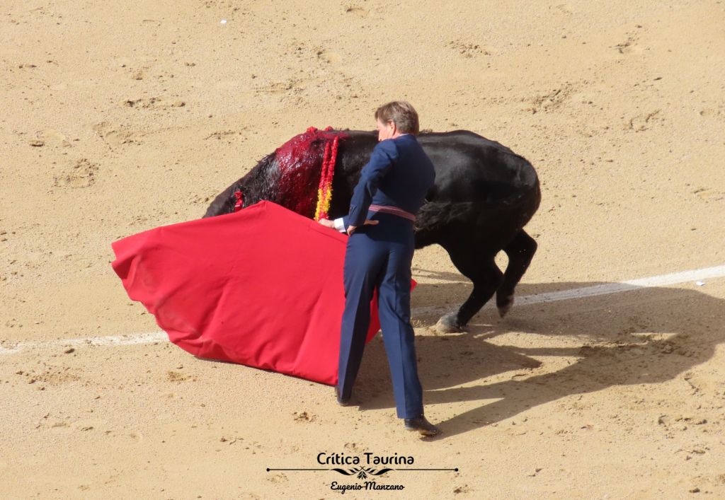 Realizó un ceñidísimo quite por gaoneras, antes de torear con menor ajuste con la muleta. Destacaron sus templados pases de pecho de pitón a rabo, así como otros remates como el afarolado o el pase del desdén. Cortó dos orejas.