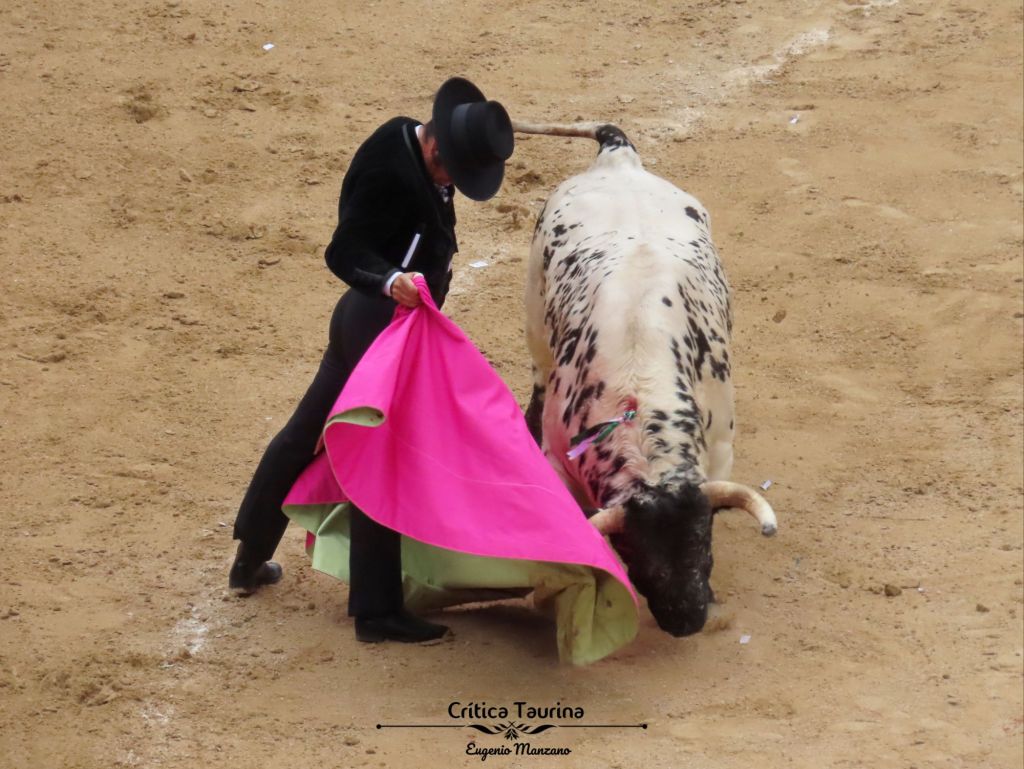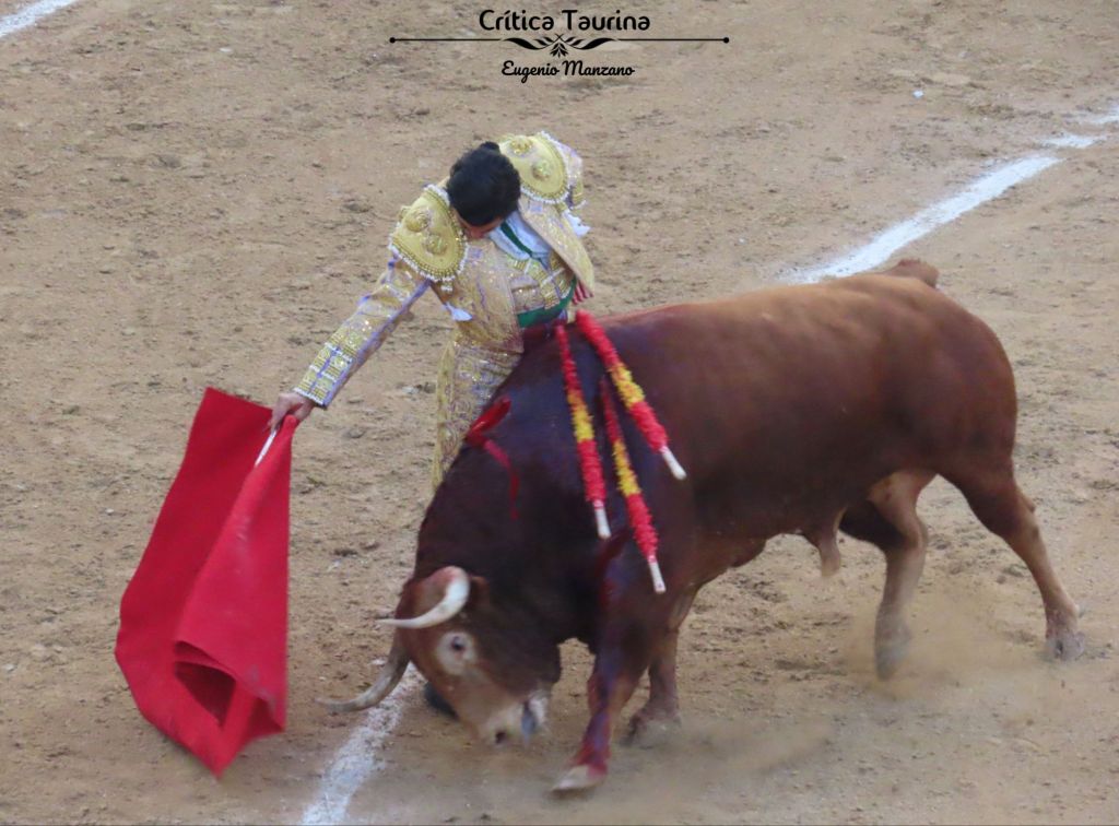 Con la muleta hizo una faena marca de la casa, dando muchas distancias al novillo. Lo citó de muy largo y lo embebió en la franela de su muleta con mucho mando. Primero con la diestra. Después, al natural. Lo bordó de este modo, con la izquierda. Cargando la suerte.