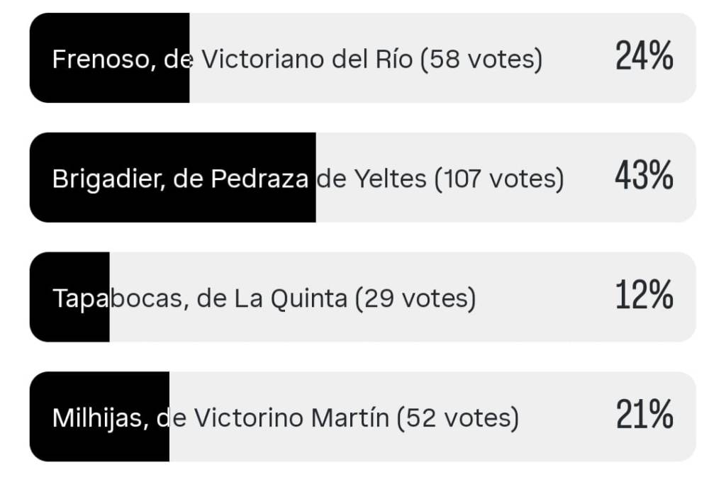 | Voto de la afición en Twitter | Seguidores de Twitter | “Brigadier”, de Pedraza de Yeltes, lidiado en Madrid |