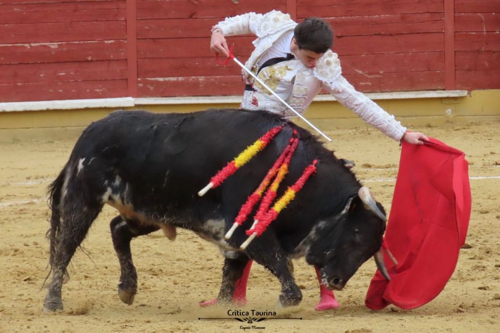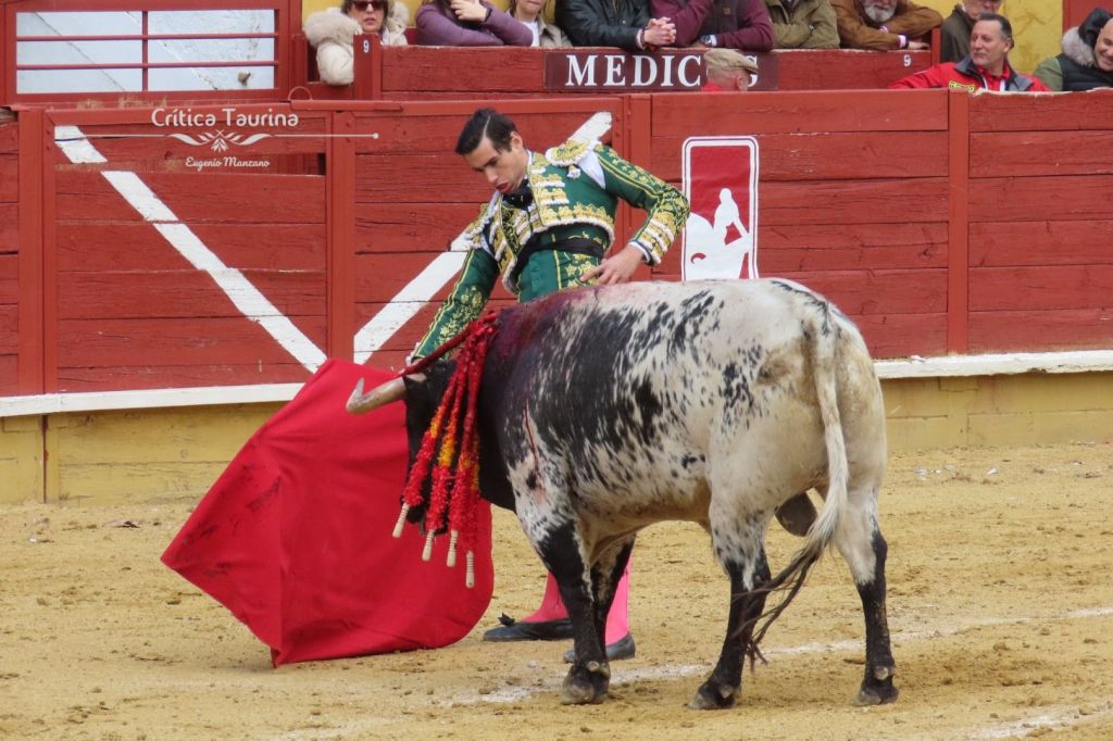 Necesitó de dos estocadas para matar al novillo, pero aun así se le concedió una benevolente oreja.