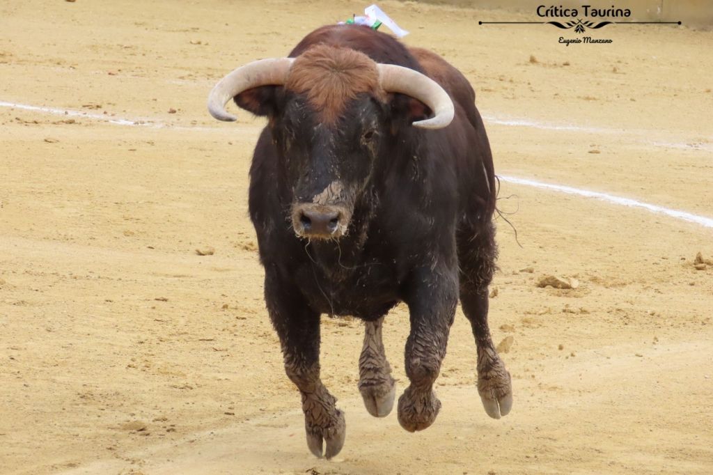 Pareció tomar mejor los vuelos del capote de Mario Vilau por el pitón derecho que por el izquierdo, mas rápido cantó su falta de fuerzas. El novillero catalán lo había recibido con una larga cambiada de rodillas en el tercio.