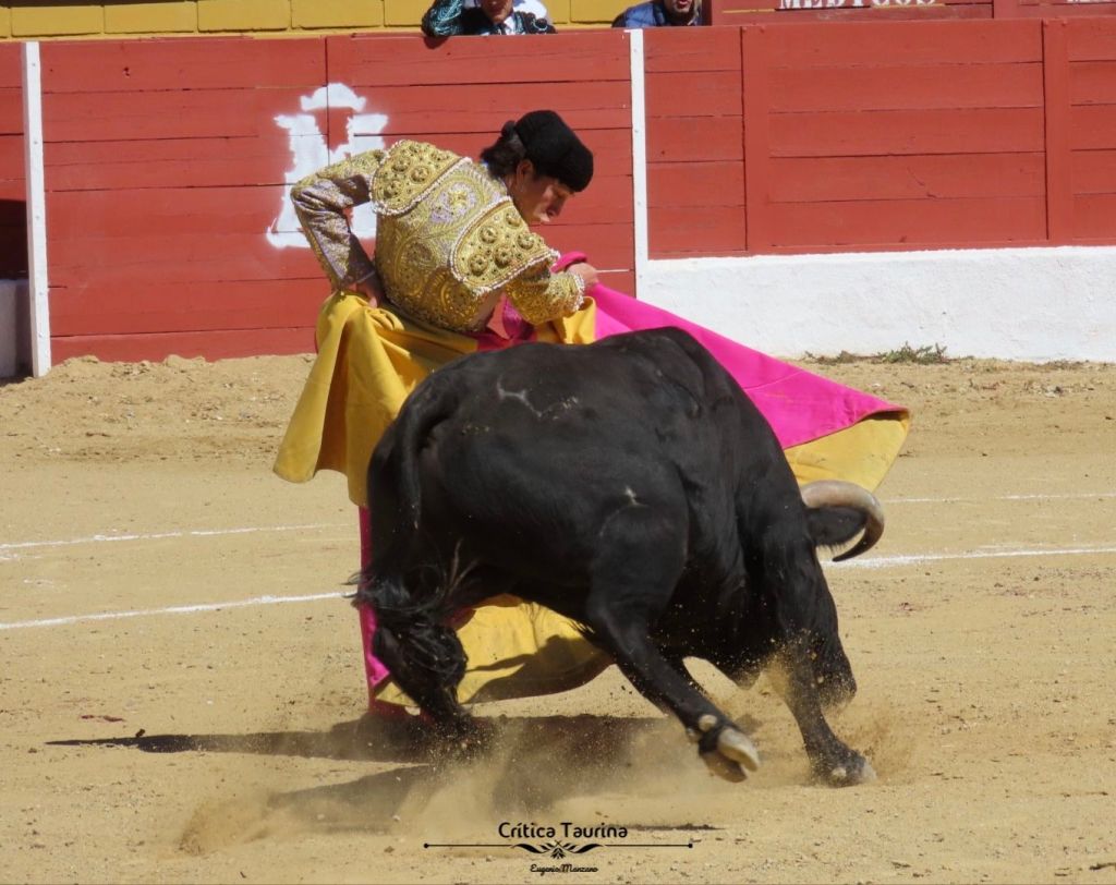Abrió plaza un novillo colorado de El Retamar, que pronto abrió la boca. El novillero venezolano Rafael de la Cueva mostró rápido su valor con el quite capote a la espalda por saltilleras.