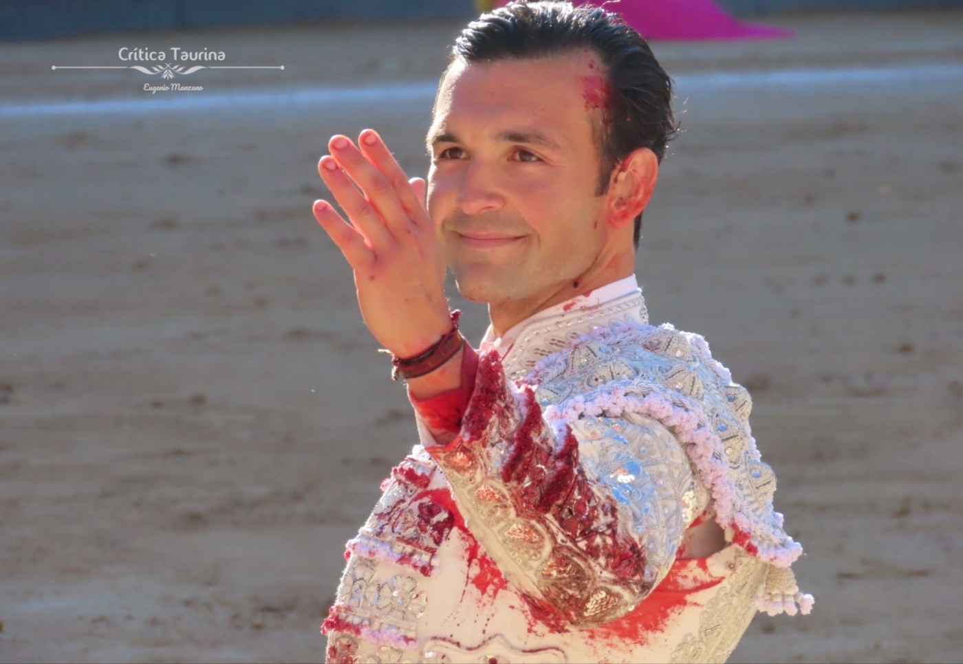 – Cristian Pérez, que confirmaba alternativa (de blanco y plata): vuelta al ruedo tras aviso y herido.